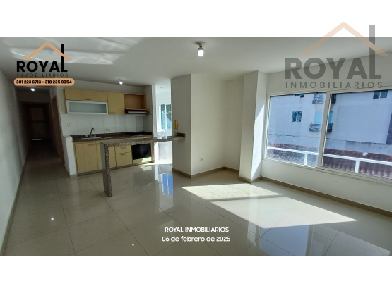 Su área social la conforman sala y comedor, sigue la cocina que es abierta, al lado encontramos pequeña zona de labores, luego 2 alcobas, 2 baños, alcoba principal con baño y balcón. Además cuenta con garaje cubierto.-